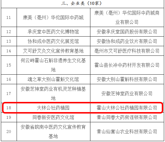 近日,勤善堂霍山大林公社藥植園經過自愿申報、聯(lián)合推薦、專家評審等重重程序,被安徽省衛(wèi)生健康委、省文化和旅游廳、省中醫(yī)藥管理局評為“安徽省中醫(yī)藥文化宣傳教育基地建設單位”!